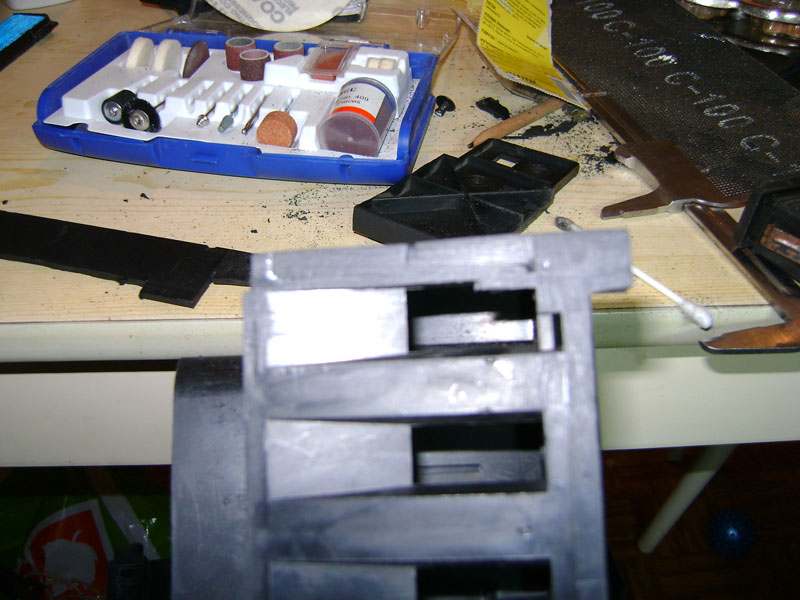 Теперь мне надо соединить блок переключателей печки с блоком кнопок. У блока кнопок есть технические полости, из-за которых не приклеить блок печки. Эти полости я заделал, и теперь появилась площадка для приклеивания блока переключателей печки.