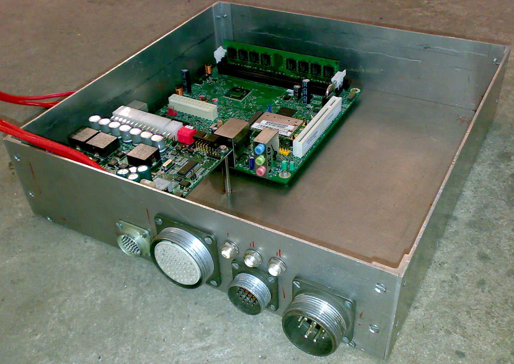 верхний ряд разъемов для WIFI и GPS антенн нижний ряд для: 1. USB 2. VGA, COM, SOUND 3. VIDEO CAM 4. POWER грунтовка покраска PS Дело осталось за малым ждать пока высохнет и распаивать переходники на разъмы. PPS Отдельным головняком оказалось найти PCI riser на два порта.