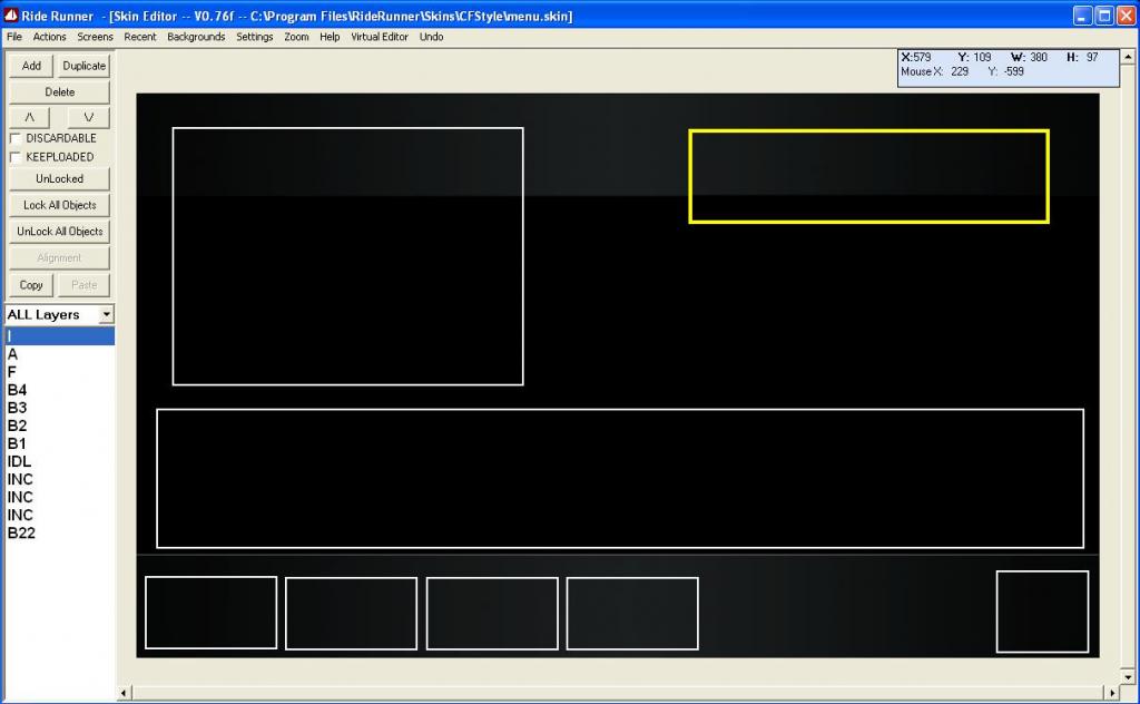 Ок! В аттаче вчерне набросанный скелет главного меню: нижний ряд - кнопки (B1-B3 пользовательские, B4, B22 - настройка и закрытие фронта), одно окно под флеш, одно - под индикаторы, одно под приложение, встраиваемое скриптом.