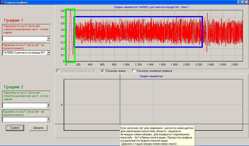 - По лямда-зонду проблема (пример проблемы отмечен синим цветом, а зелёным отмечено - как примерно должно былобы быть) по напряжению.