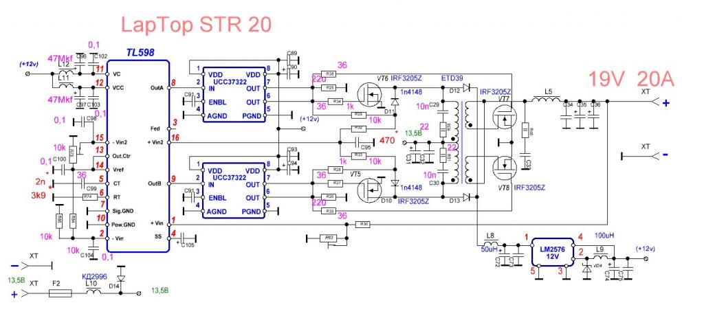 Итак, нужно запитать ноут в авто, кроме него возможно понадобится ещё и монитор большой (может ещё какое оборудование..) Цель: как можно меньший нагрев деталей (не хочу применять вентилятор), кроме того и размер естественно надо бы поменьше, да и надёжность, также возможность перестроить выходное напряжение при необходимости без больших заморочек. Защита присутствует.