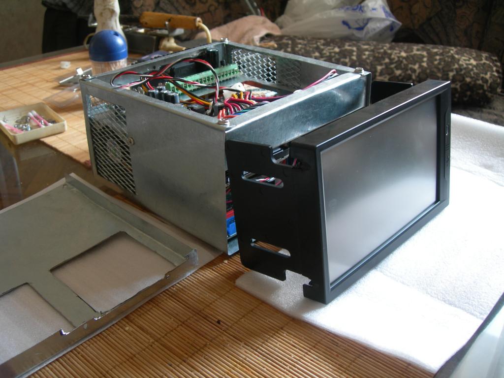 монитор- LILLIPUT 701 7"; мамка - Intel® D945GCLF CPU intel ATOM 1.6; БП - E-10000; HDD - Seagate 2.5 60 GB; ST980811AS 8MB 5400rpm ; память - 2 gb; корпус 2 din собственной конструкции