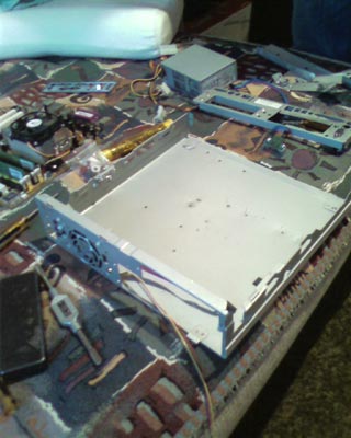1. Раскопал я таки один корпус, была это Barebone система MSI, какая-то из древних, ПIII-866 но зато в полном фарше - USB, FireWire, Audio И прочая лабуда. Все внутренности выпотрошил. Остался один голый кузов. И поехали... 2. , 2_2. Сначала на болтах (болт-корпус-гайка-мать-гайка) прикрутил материнку. 3. Потом Хардик привинтил к корпусу (опять же болт-гайка-хард) 4. Впердолил БП - на двух стоечках, прикрутил к корпусу 5. Вид сверху без задней стенки - она съемная 6. Поставил PCI rizer на три слота (только два можно использовать) и воткнул в них свою Audigy SE и GoTView PCI DVD2 Deluxe. Работают. Проверял ![]() 7. Прорезал дырку под кулер проца 8. Прикрутил Гриль и собрал. Вот такая миниатюрная красота