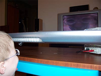 склеил корпус, а пока он сохнет врезал в спойлер камеру, вот что получилось