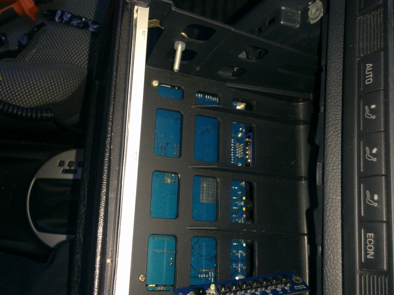Хочу поделиться своим проектом. :) Изначально требования к системе предъявлялись такие: - "штатная" навигация (главное требование, чтобы ничего не приносить/уносить с собой) - более менее качественная музыка - отказ от использования компакт дисков и флешек (опять же, чтобы ничего не таскать с собой из дома) - интернет (почта, погода, Skype, ICQ) - hands-free Также в перспективе планируется уставновка камера заднего хода. И кроме этого, задача была в том, чтобы реализацию данного проекта вписать в бюджет до 15 т.р. И мне почти это удалось! :) Общий вид проекта: Снаружи: Внутри: Основным импульсом к началу строительства была замена старого 3ех летнего ноутбука на новый. Было принято решение взять как раз его за основу всей системы. Смысла продавать отдельно я не видел, т.к. в инете за него давали до 3000р. в идеальном состоянии, а у меня были отломаны края у корпуса (недоработка ASUS'а) и вообще он выглядел довольно потрепанным. Так что можно считать первоначальным вложением в систему этот ноутбук. Далее необходим был экран. Так как систему планировалось инсталировать в 1din\2din адаптер под магнитолу, размер моника подбирал исходя из соображений максимально возможной диагонали, вообщем что влезет. Выбор пал на 8.9" BS SKD8.9VAS-9 + touchscreen. Был приобретен новым в Питерской конторе торгующей электронными компонентами за 5300р. В процессе использования у моника был выявлен один весьма существенный минус - невозможность отключить синий экран при отсутствии сигнала. Но частично эту проблемку решить таки удалось просто подключив управление питанием монитора через USB разъем ноута. Сделал 2 реле, одна 5 вольтовая, при включении компа подавала 12 вольт на силовую релюху, которая, в свою очередь, включала монитор, усилитель и активную антенну. Кстати самому монику потребовалось таки свое питание. От автомобильной сети работать он не захотел, поэтому пришлось приобрести бпшник 9-14в > 12в. Проблему питания самого ноута я решил простым приобретением нового фирменного ASUSовского автомобильного з/у для ноута за 1100р. После покупки моника и бп начался процесс хирургического вмешательства. Исходный вид торпеды а/м: Еще видна установленная стандартная 1дин магнитолка без морды. Собственно сам, почти готовый корпус карпутера. В процессе доработки. Собственно доработка нужна была минимальная. Убрать перемычку между 1дин отсеками... …и освободить место для платы контроллера монитора. Справа кстати лежит орудие трепанации - гравировальник bosch с фрезой по пластику. :) Для «испытаний», дабы не ломать дорогой монитор, я сделал его имитацию с точными размерами из картона, и выпиливал уже по этому шаблону. Почти законченный вид. Остались видны только два отверстия от перемычки. Но их предполагается убрать без применения шпаклевки, краски и т.п. Вид с зади. :) Кстати, в получившимся корпусе, как оказалось, хватило бы места для установки Mini-ITX материнской платы и бп. Испытания! :) На фотке виден ноут уже со снятым экраном. Сам экран планируется установить под потолок для задних пассажиров, на откидывающемся моторизованном креплении. Последний раз редактировалось neoseven; 04.12.2011 в 16:15. |