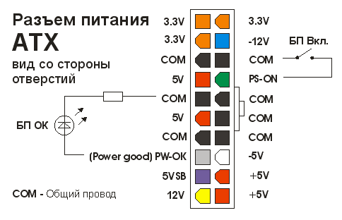 да, пропустил слово "От домашнего компа". Извинияюсь. Берете с молекса +12 и GND. перемыкаете на разъеме зеленый и любой черный провод проволочкой и система старутет. Без перемыкания не стартанет.