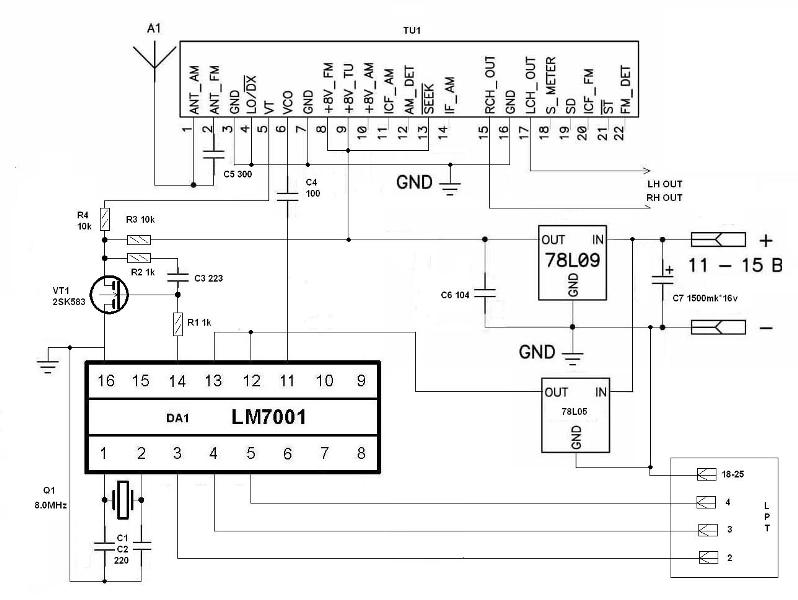 одно шипение, если на 5 ногу повесить переменный резистор, то ловит нормально, т.е не управляет лм7001 где может быть косяк? |