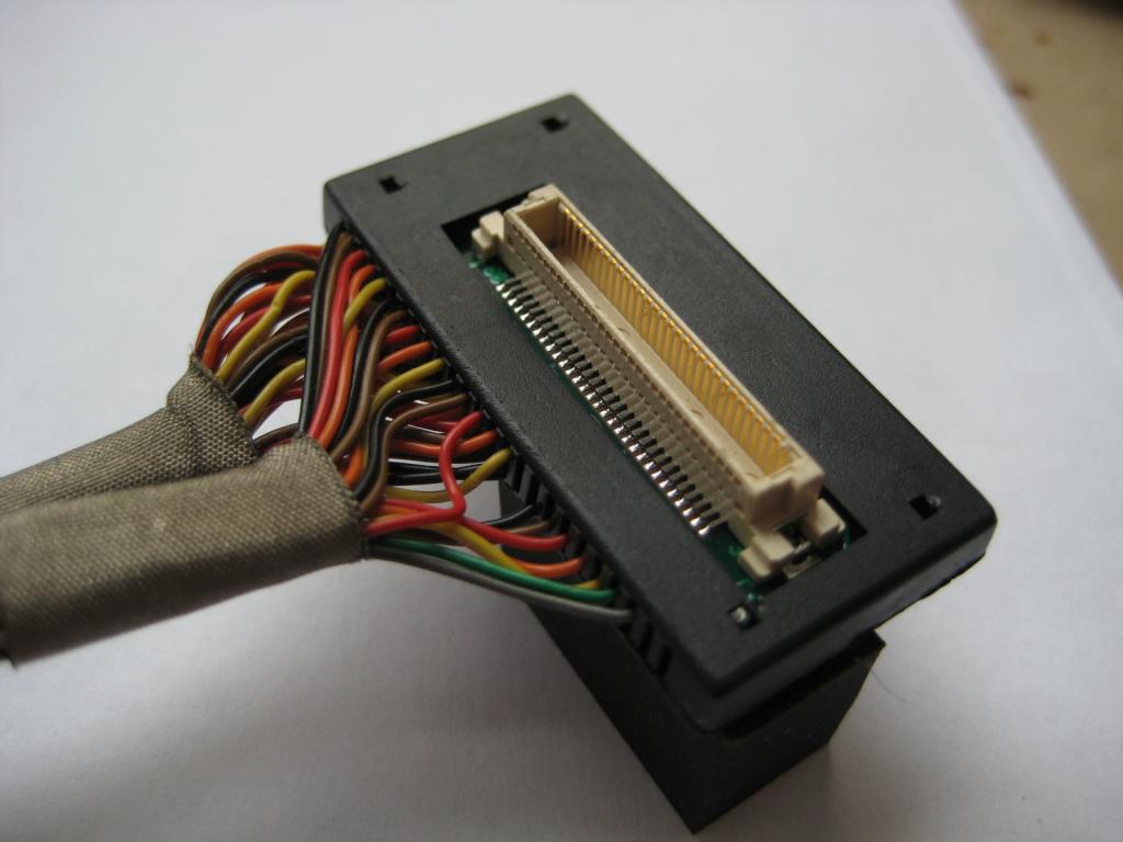 Может уже и поздно... Нашел у себя похожий разъем, разведенный на панельке с проводами. Правда он на 60 контактов. Но ведь можно половину отрезать. Зато не надо будет паять "мелочь", если подойдет. Могу подарить, для экспериментов.