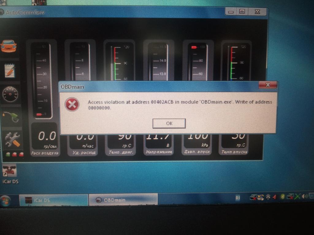 и порт в блютузе (сом 6 у меня) и обд майн. При засыпании компа вот такая ошибка как на фото. А так же пропадает функция порта на адаптере (только перевтыкать в разьеме авто...) опят винду похоже надо переустанавливать ... Что интересно заработал чек енджин (круглые приборы) , это так надо?