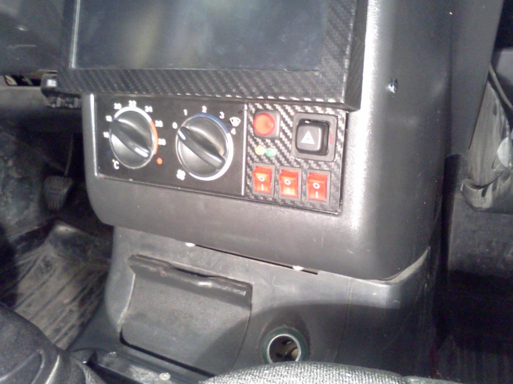 На мой взгляд над дизайном рамки лучше еще раз подумать. Много углов острых, не очень смотриться. Если тянуть пленкой, то постараться без стыков. Самое видное место ведь, еще и со стороны пассажира. В глаза шуруп бросился, его бы тоже удалить.