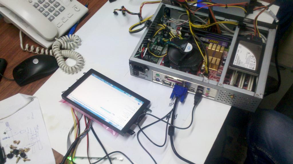 Ну что, пришлось на работу положить три буквы, так как очень чесались руки)))). Как приехал на работу сразу разобрал монитор. Потом отнес к механику, очень толковый мужик))), и понеслась. За целый день правда только подогнали рамку под моник и корпус. Из-за того что матрицы разные, штатная 88х155 мм, самсунговская 92.4х152.4 мм. рамку пришлось дорабатывать, и сам корпус тоже. Сейчас все подогнано и работает. Завтра упакуем контроллер матрицы и выведем провода. Пока как-то так))).
