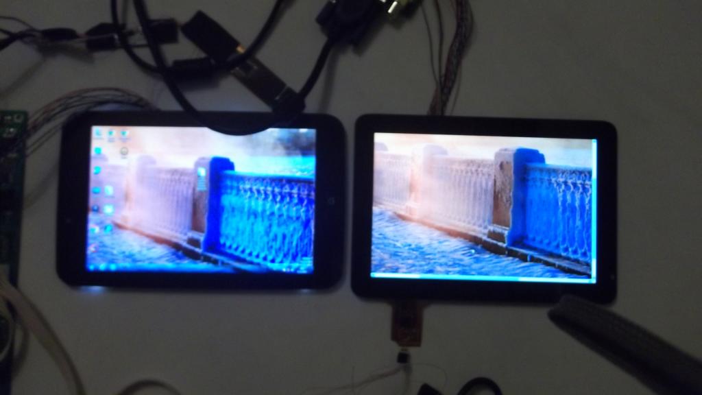 Либо если финансы позволяют давай закажем новую матрицу от мини ипада 7.95'' 1024*768(пропорция 4:3) прямо с емкостным тачем в сборе,да подключим.