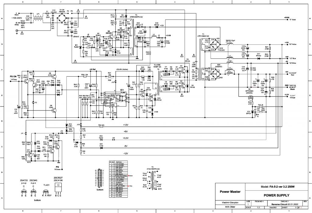 старый там даже 3.3 в нету но зато транс большой и еще 250ват на tl494 там транс очень маленький так вот у транса 6 выводов 2 как я понял на12вольт и 2 спарены на 5вольт как мотать транс как я понял из этой ветки у меня 4 вывода а не 6 . схема почти такая же только на миналы диодов другие . |