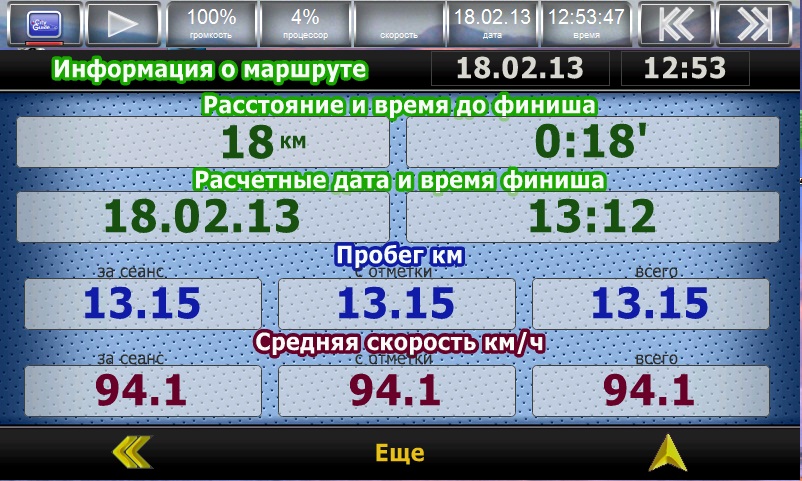 3. "Информация о маршруте" - Данные о финише (или в варианте без этих данных - правый верхний угол)