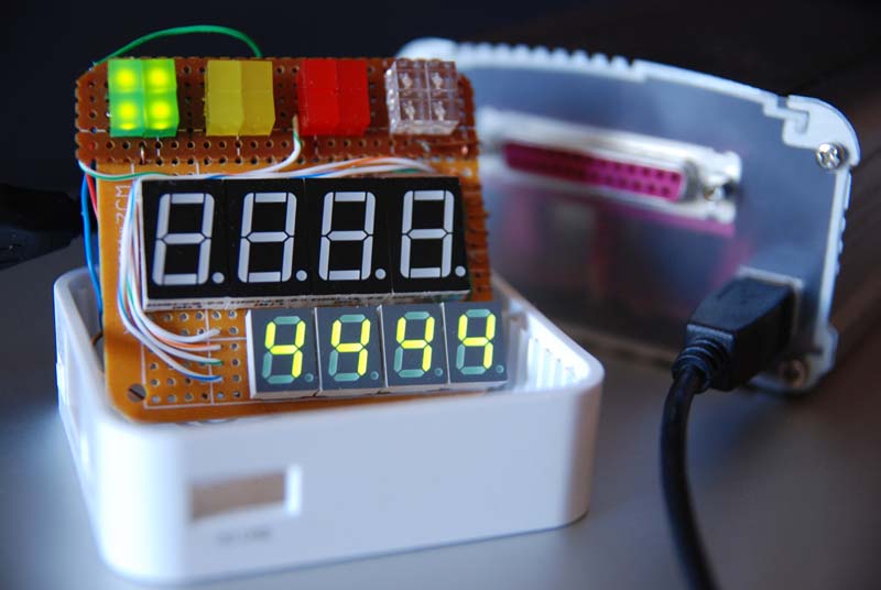 1. проект полностью переехал на Atmega32. Больше портов, более свободный монтаж. Появилась возможность, например, вывести диагностические светодиоды которые на 8-ке при всех наших хотелках уже просто некуда было запихать 2. Система получила независимое питание 7-40В. Блок питания собран на LT1076CT. Все собрано по типовой схеме. и настроено на 5,05В 3. Сделан индикационный блок. т.к. мне менее интересна индикация оборотов, чтоб не делать дополнительные лампы, светодиоды объединили в группы. полоса индикации оборотов на них тоже выводится довольно информативно, однако появляется возможность индикации ошибок и неисправностей, зажигая например одну красную лампу Работает все по 4м проводам (питание+интерфейс), интерфейс собственный, довольно простой и абсолютно не требовательный к скорости. Индикатор собран на Tiny2313, одна тинька тянет 6-7 сегментных индикаторов, в индикационном блоке их будет 2 (пока работает только один) Яркость индикаторов не достаточна при ярком свете, с этим пока боремся) |