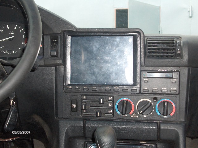 Насмотревшись,начитавшись тоже решил попробывать преобразовать свой BMW 525 E34.В машинке уже было установлено: DVD ресивер JVC KD-DV6207EE,CD-чейнджер JVC CH-X1500E ,4-х канальный усь Alpine,акустика передняя 2 компонентная JBL,задняя Pioneer,саб Pioneer TS-W305F(free air,задний подлокотник).После долгих раздумий было решено все оставить,но в систему вживить PCCar.Для начала нужно было определится с монитором.Indash мониторы все маленькие не более 7 дюймов.Хотелось что нибудь побольше.Поэтому был приобретен монитор для установки в панель приборов намертво. NoName монитор Для этого нужно место в панели,а его как такового не было. После долгих примерок было решено сделать так Магнитолу хотел перенести вниз под пепельницу.Но после вскрытия центральной консоли выяснилось,что и там места маловато для переноса магнитолы.Но нашелся выход.Магнитола была разделена на два компонента,т.е. на само устройство и панель управления.
