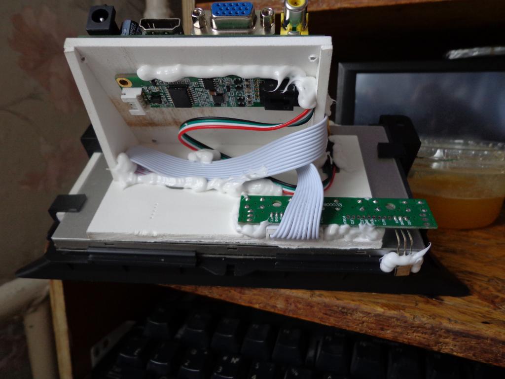 Вот готовая матрица со всем контроллерами ,контроллер устоновлен так, чтоб кабель VGA не куда не упирался.