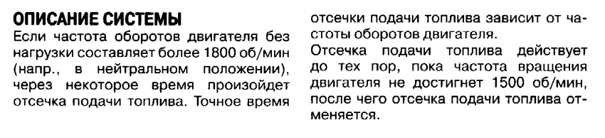Еще раз вернусь к той странной отсечке. В мануале на свою машину обнаружил вот такую пометку: