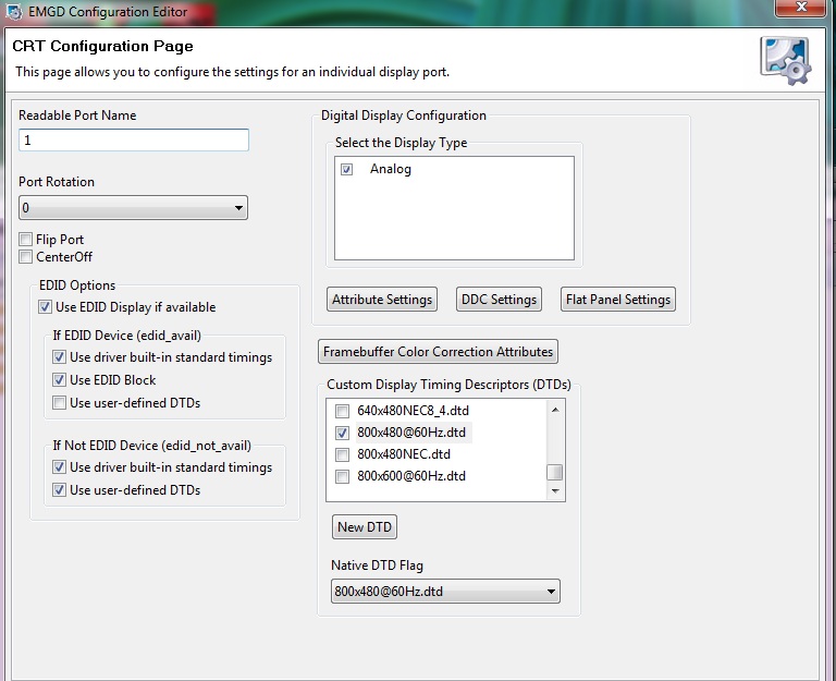 При настройке столкнулся с двумя проблемами: 1. Определение правильной DTD строки. Тут я угробил некоторое время на перебор различных вариантов в том числе и приведенных здесь. Но окончательное решение подсказал в своем посте aptm (за что ему огромное спасибо). На стационарном ПК у меня стоит карта Nvidia с HDMI, вот туда я подрубил вторым свой моник: "подключил монитор к компу с видеокартой на Nvidia, и настроив нужное мне разрешение с помощью Nvidia control pahel, считал значения DTDСalculator'ом. Затем переключив монитор обратно, запустив DTDСalculator, записал найденое в реестр." ((С) aptm.) Мне кажется этот способ можно применить для любого моника. 2. Несмотря на то что правильная строка была записана в реестр с помощью DTDСalculator'а, нужное мне разрешение 800х480 упорно не желало появляться в списке доступных в панели управление Intel. Установлен драйвер для GMA3600 8.14.8.1091 для W7. Причем разрешения типа 832х624 или 1024х600 добавлялись без проблем. После долгих мучений установил PowerStrip и с его помощью установил разрешение 800х480. И что интересно, после этого куча доп разрешений в том числе и моё 800х480 стало доступно в Intel'вской панели управления. Далее снес PowerStrip и ВСЁ. PS. DTD строка для моего моника: 66 0e 20 e0 30 e0 14 10 20 50 13 00 00 00 00 00 00 1c |