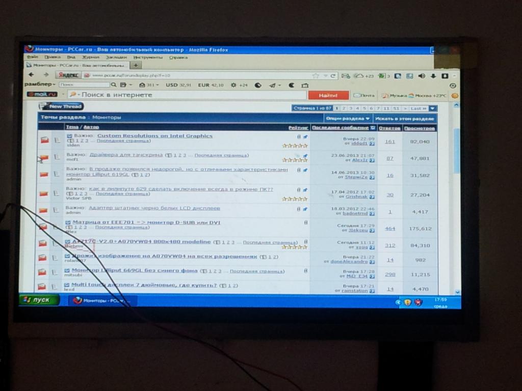 Уменьшил область изображения под тач,примерно на 20 пикселей. Получается 1280х780,но мне не нравится изображение. Матрица,естественно,работает не в штатном режиме,в результате геометрические искажения,На фото с нокиатест,видно что круги становится овалами.Нет четкости шрифта(более,менее шрифт остается четким при разрешении 1024х768,при родном 1280х800 уже не то) Мне кажется лучше найти более подходящий тач(этот -то что было под рукой) |