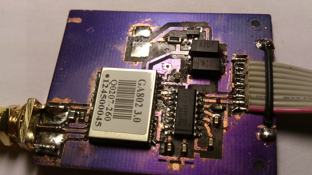 Вот сделал наброски модуля GPS. Немного грязновато пока, но это для испытаний. (на фото не хватает аккумулятора и проводка +3.3)