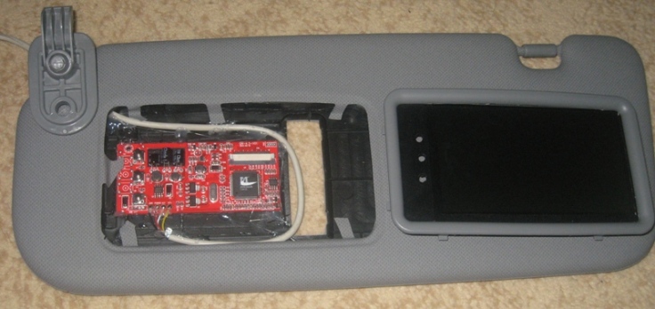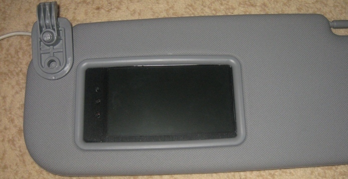 В первую очередь, нужно было решать проблему с камерой ЗХ, за все время эксплуатации я к ней уже успел привыкнуть. Новая система поселится в авто еще не скоро, поэтому купил на том же ебай монитор 5" и врезал его в козырек - не так удобно как раньше, но обзорность улучшает.