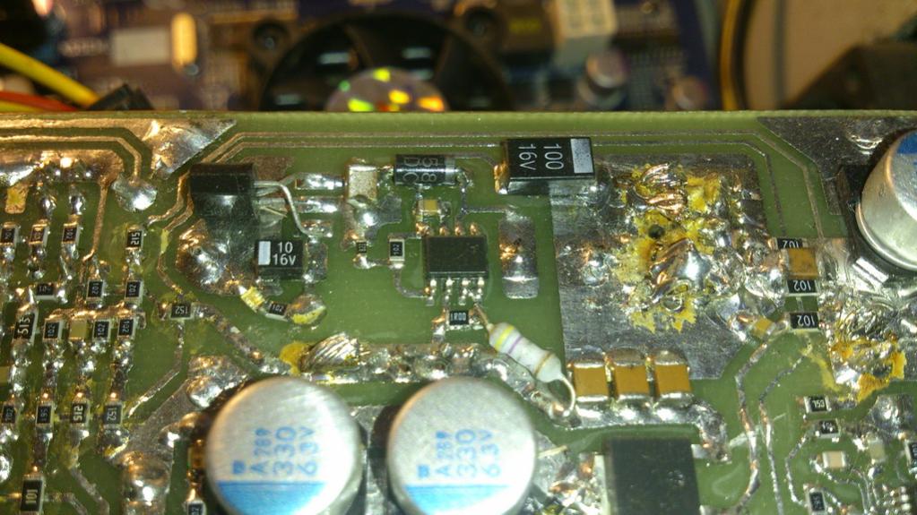 Да кондеров не жалко - лепил куда можно! Резюки параллельно стоят 2 штуки - просто нужного SMD не было под рукой. Кондеры полимерные, если новые - дорогие. Лучше мамку распаять старую.