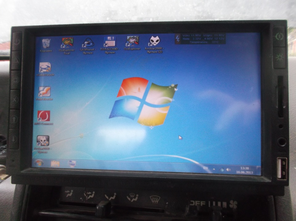 монитор порой вызывает противоречивые чувства. С одной стороны богатый функционал ( регулировка подсветки, притухание от габаритов, КЗХ и AV2 ) с друой стороны качество оставляет желать лучшего, ИК пульт так и не смог заставить работать. Подключен по VGA, тач работает оч хорошо.