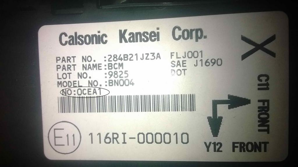 yrii-b сегодня устанавливал сигнализацию на NOTE правый руль 2009? года. Должен быть SmartKey, но его не было, а был прописан чипованный ключ. Нужен был второй чип в обходчик. Обратился к знакомому. В результате совместный действий удалось прописать чип. За приборкой НИКАКИХ наклеек нет, в книжке тоже. Сняли BCM за бардачком сверху, на нём нашли номер "0СЕА1". Но пинкод у товарища сгенерировался только "старой" программой (как он сказал), которая генерирует 4-х значные номера. Затем всё прописалось на ура.