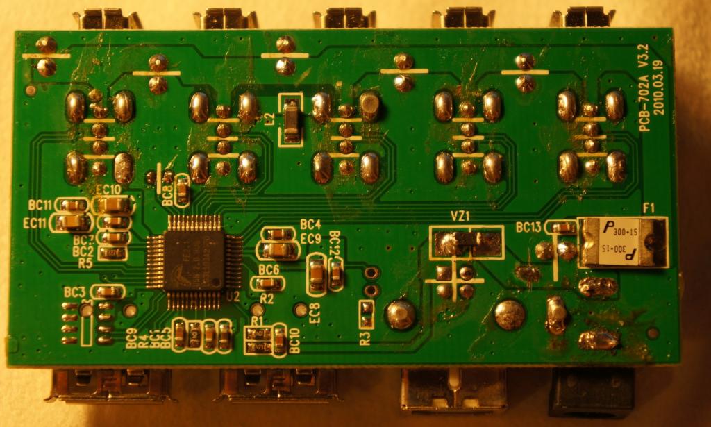 У меня хаб такой 7-port AirTone, он честный 7-портовый (одна микруха) и с конденсаторами на каждом порту. С ним все работает. З.ы нумерация портов у него такая.. Последний раз редактировалось Rage2; 28.01.2014 в 19:47. |