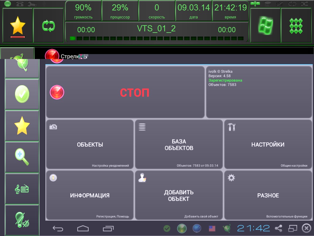 Встроенные проги сверху вниз (иконки слевой стороны скрина): навител (иконка родная), стрелка, viber, Zelo рация (в дороге развлекает)