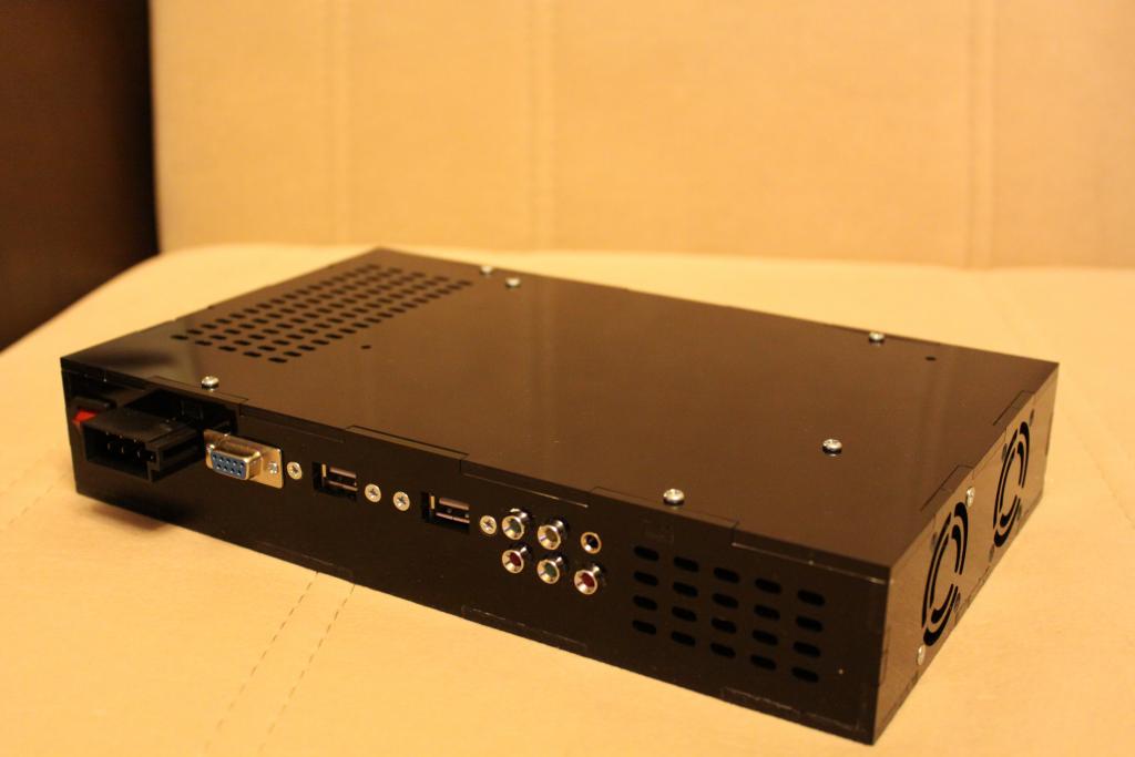 Плату от нетбука и плату с контроллером питания поместил в корпус из черного оргстекла, сделанного на заказ у всем известного здесь человека.