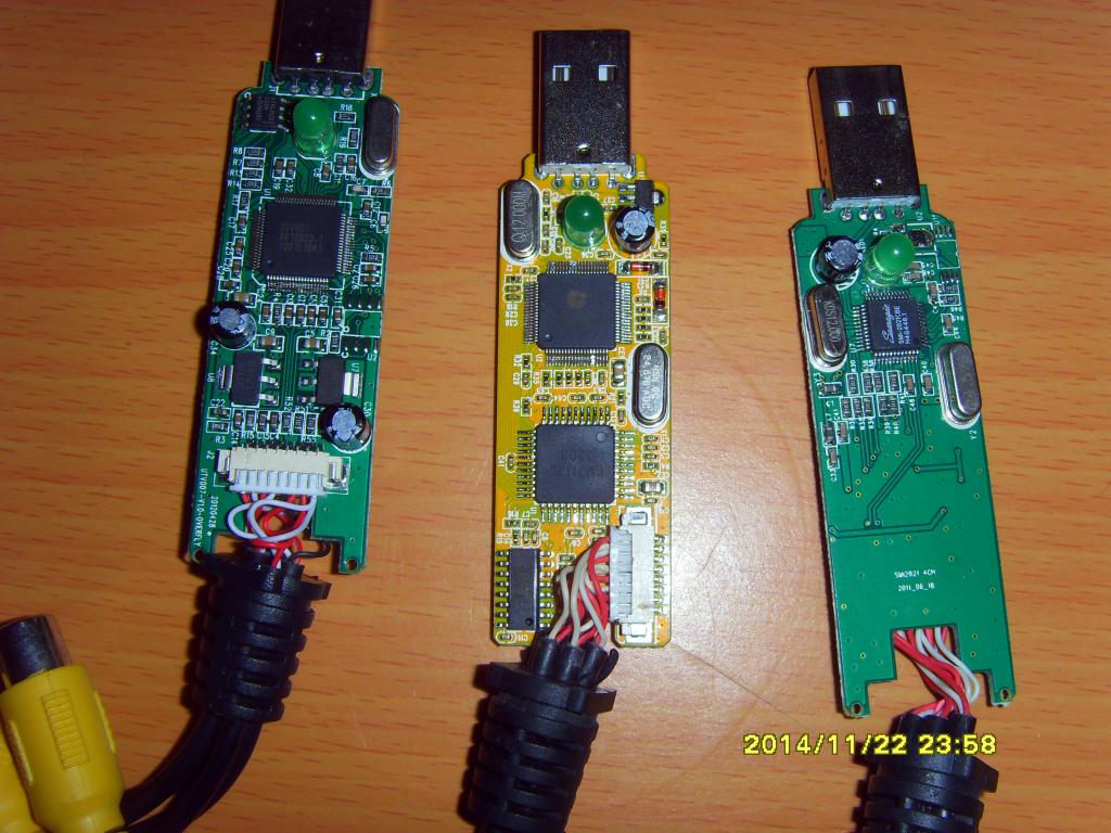 Уважаемые гуру .подскажите с таким вопросом: есть 3 похожих девайса.какой из них будет точно работать.оставить нужно 1 а 2 вернуть.как я понял тот что справа неподходит....остаются 2 . Желтый на stk 1160 и чип gm7113 . Крайний слева на utv 007 . По идее должен подходить на stk1160 лучше. А вот запустить картинку с камеры на компе смог только с utv 007. на планшете проверить сейчас нет возможности какой будет работать. Вот и прошу помощи и Вашего совета...