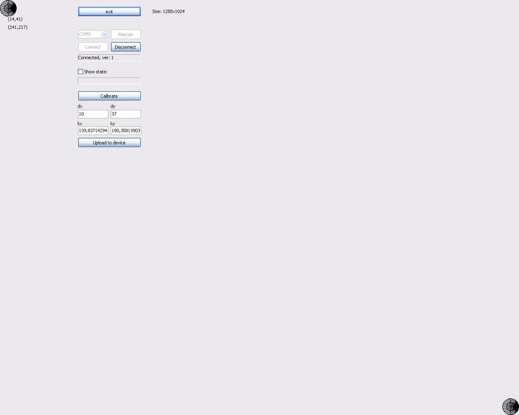 Доброго времени суток! Прошу помочь. Возникла проблема с повторением этого контроллера тача. Прошить hex файл в ардуину получилось легко (ардуина определилась на com3, прошился успешно). Затем открываю программу для калибровки, в ней контроллер определяется на com 7, но соединиться с контроллером не удается.