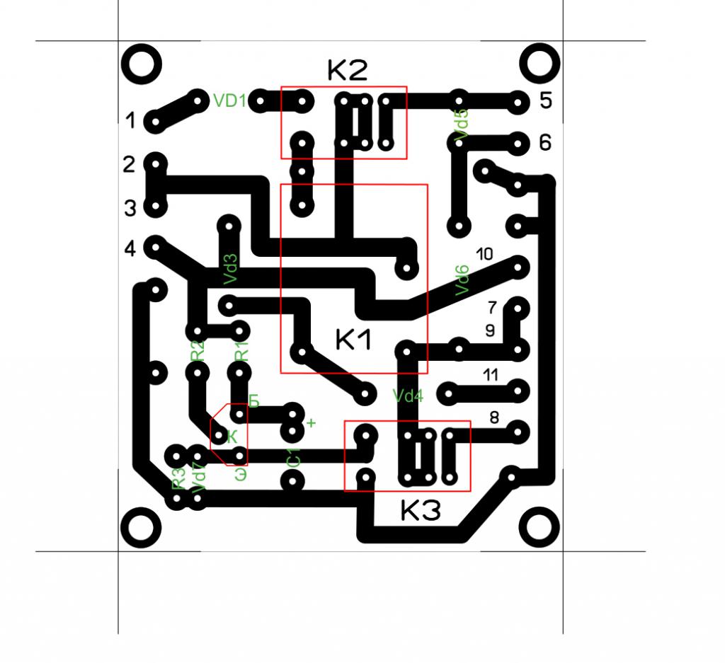 Да как-то стыдно такую сырость выкладывать. Первая версия платы (которая была изготовлена) не выдержит никакой нагрузки, плюс на ней землю я вел дорожками, а не заливал на корпус платы. На ней обкатывал функционал. Есть вторая версия, с таймером, но по причине приобретения девайса - забросил, так и не доведя до конца (обвязка таймера не закончена, ошибка с землей такая же, как и в первом варианте, толщина дорожек вряд ли выдержит нагрузку). Если так сильно надо, могу оба варианта сбросить в личку, хотя проще с нуля наверное делать по правильному, чем исправлять мои каракули. Платы рисовал в Sprint Layout 6.0. Пишите в личку, т.к. оповещения об ответах в теме почему-то не приходят на почту.