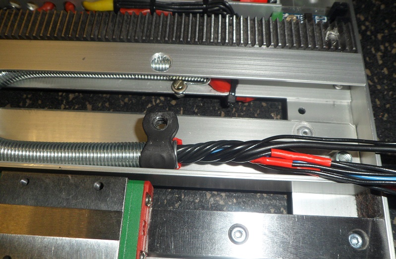 Один конец пружины крепим на каркасе с линейными направляющими, второй на самой каретке.