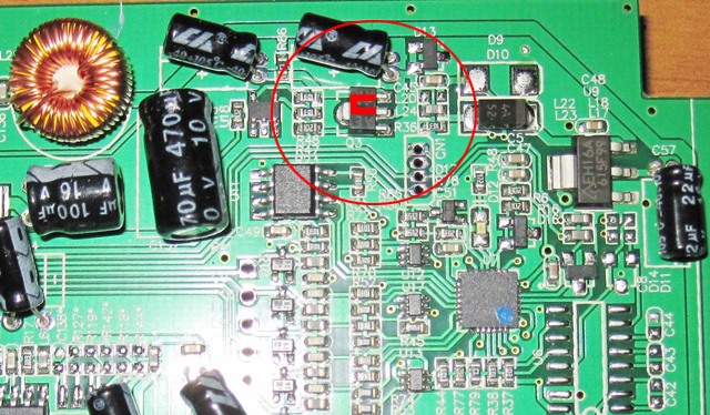 Выпаять транзистор и соединить дорожки необходимо для того, чтобы во время переключения на парковочную камеру процессор на контроллере монитора не отключал питание контроллера тачскрина. Отключение питания контроллера сенсорной панели может привести к ее некорректной работе после подачи питания обратно. На фото транзистор, который управляет подачей питания на контроллер тачскрина.