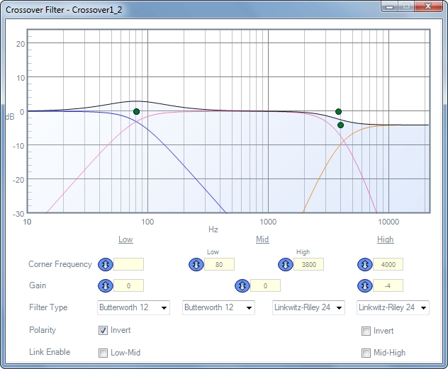 Ближний твиттер тише из-за того, что водитель так лучше дорогу слышит? )) Снизу Баттерворт 2-го порядка (-12 дБ на октаву) используется, как я понимаю из расчёта, что ниже 80Гц если мид и сможет что-то отыграть, то пусть попробует, иначе можно было бы и 3-им порядком срезать? А почему в кроссовере между мидом и твиттером именно Линквиц-Райли? Переход лучше получается, чем тоже самое при Баттервортах? В плане наглядности твиттеры на блок-схеме предпочтительнее, конечно, да и горбы рисует на точках перехода, правда, как оно в действительности будет - так же, как и сигма рисует, или нет... Но искать сами границы среза большинству пользователей придётся практически с крутилками ФНЧ/ФВЧ и "слухачом-настройщиком" (т.к. таких практических данных/мнение по большинству конкретных компонентов взять негде даже примерно). Вообще, как я предполагаю, задержки - это постоянная характеристика для одного и того же водителя, если он только сидение не катает туда-сюда эпизодически. У себя мы задержки посчитали, может, на выходных попробуем залить и послушать, что выйдет на практике. |