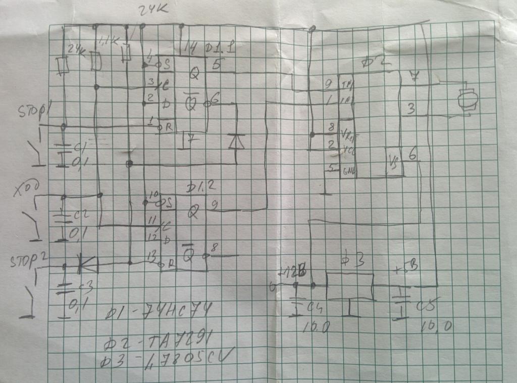 Т.к. уже несколько раз спрашивали, прикладываю схему управления механизмом подъема/опускания планшета. К сожалению, схема только в виде фотки с листка, т.к. делал не я.