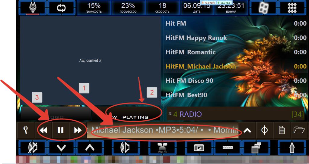 Можно ХОТЕЛКУ? При работе инет картинок и названий трека и исполнителя (см. 2), центральная консоль (см. 1) не нужна... Хотелось бы кнопки (см.3) перенести на место (см.1), а на место кнопок (см. 3) добавить кнопки громкости больше, меньше... как в икаре.. Это возможно? ПС.. для праворульных авто... абзац 2 в зеркале...