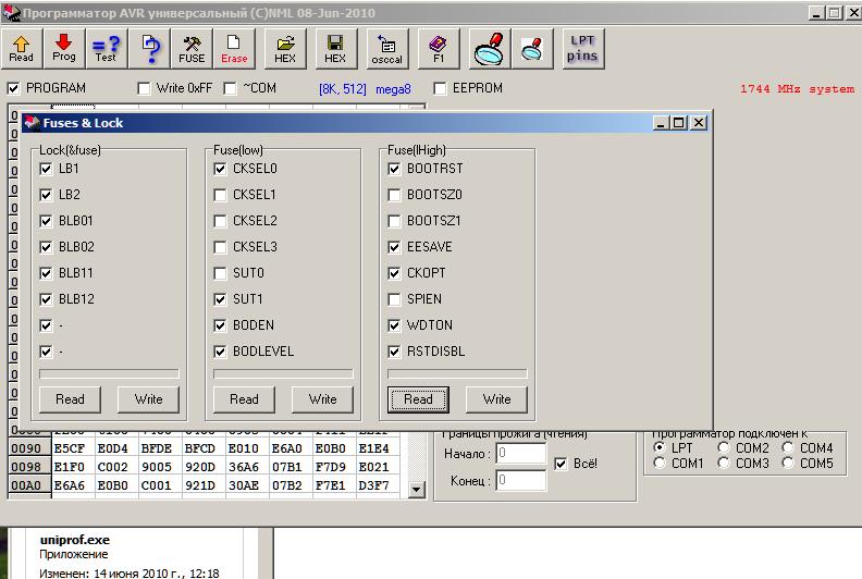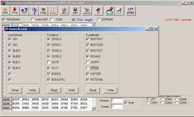 Контроллер прошил. Фьюзы поставил вот так (не уверен что правильно...) пока не шил. Подскажите как правильно ?