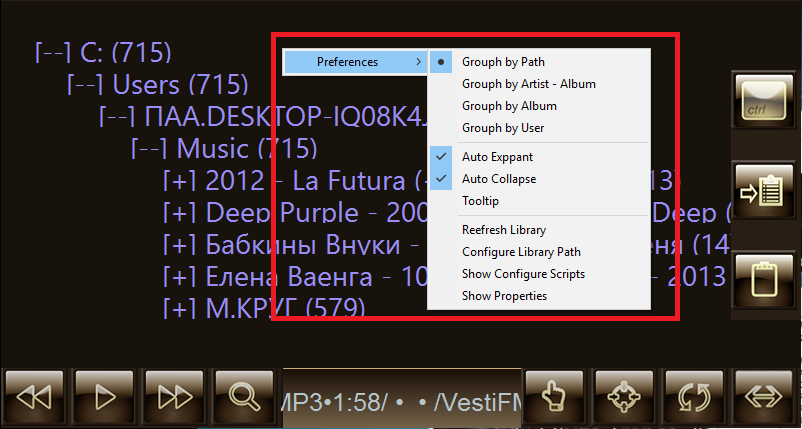 Возможно ли где нибудь в настройках сделать, чтобы при выборе песни она сразу же начинала играть или как то добавить кнопку "PLAY"? (ps, в icards почему то нажатие кнопок "точное", с первого раза так сказать происходит нажатие, а в фубаре почему то приходится много раз нажимать на песни, такое ощущение, что тач в нем некорректно работает) Спасибо за ответ.