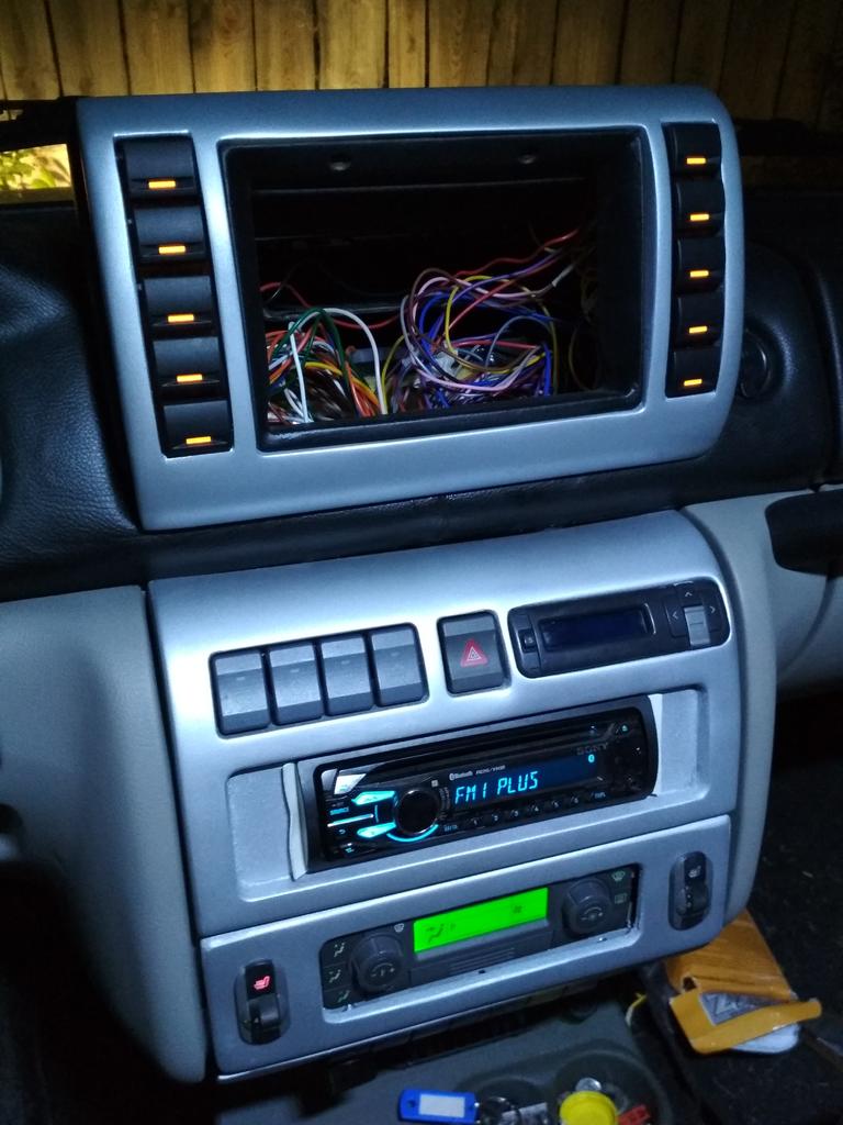 Т.е. для кнопок был сделан жгут проводов, без скруток и пайки. Кнопки подключены к штатной родсветке и регулируются с помощью МУС,вместе со штатными кнопками. Лицевая часть консоли крепится в трёх точках. Средняя часть(основание) через кронштейны крепится к торпеде. Задняя часть , пока просто вставлена, но имеет крепления под болты с внутренним ш/г . Сама торпедо и консоль были обтянуты термокожей В торпеде переделаны воздуховоды. Магнитолла подключается через ISO разъём. Рамка сделана из дерева, обработана полиэфирной смолой и покрашена. Кнопки управлять Г.У. не умеют (пока что) При замене Г.У. на любое другое нужна будет только рамка новая . В планах перейти на khadas vim, который пару лет уже лежит..