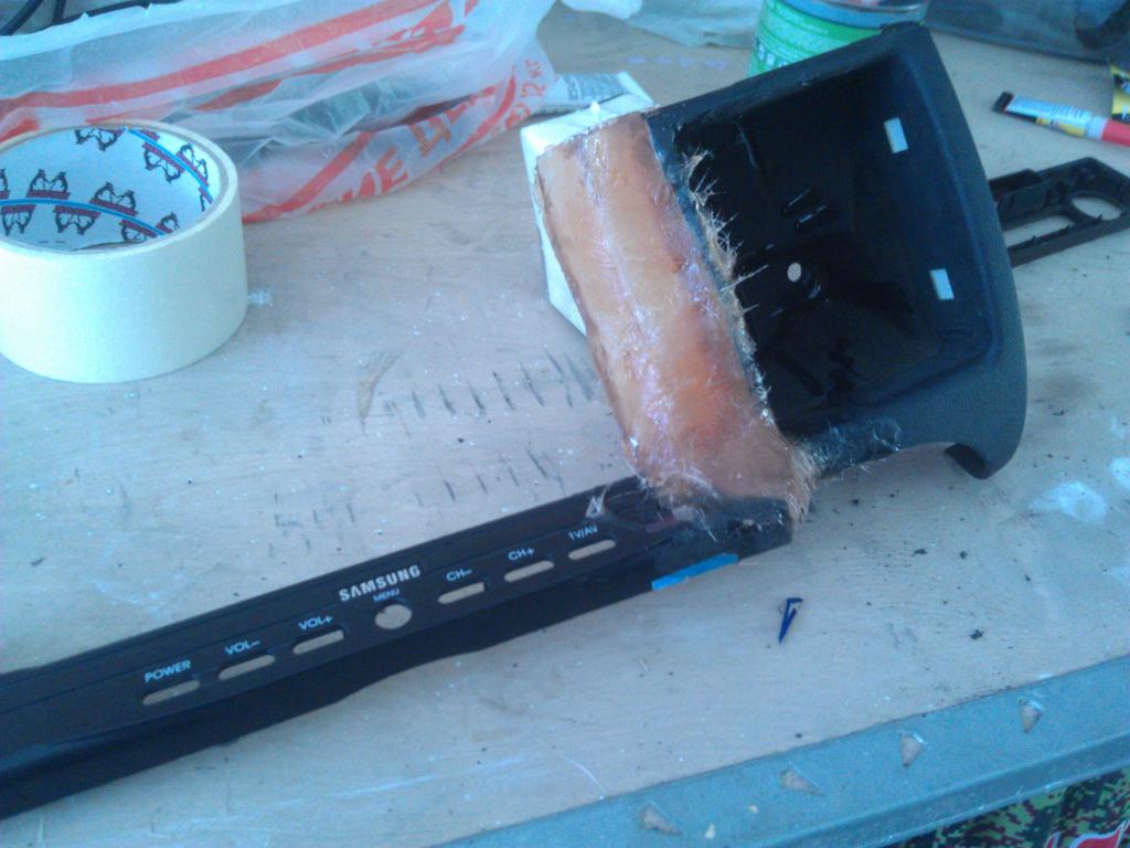 Процесс сборки переходной рамки движется по маленьку)) Перепробывал кучу вариантов сборки и на последнем все таки получилось собрать ее нормально (вернее склеить из полиэфирной смолы). Также вынес антенну для GPS и WI-FI на торпеду в районе дворников (прием спутников вроде улучшился). Антенна GSM пока живет возле бардачка. В рамке слева будет жить плата от клавиатуры и схемка мультируля(пока еще в разработке, управление магнитолой и планшетом). Панель для кнопок, что внизу экрана уже работает (пока на нее повешены основные функции планшета). Ну и немного фото
