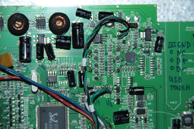Но! Такая схема где ЮСБ идет в кабеле HDMI не очень удачная, бывают проблемы, поэтому: - в контроллере монитора (лилипут) я отпаиваю на плате 2 индуктивности, чтобы 2 сигнала (USB DATA+ и USB DATA -) не шли в кабель. - припаиваю USB кабель небольшой длинны к штатным отверстиям на плате контроллера монитора напрямую и использую обычный удлиннитель ЮСБ. На фотках видно что проделано (апгрейд платы контроллера Liliput): 1. выпаяны дроссели, чтобы 2 сигнала (USB DATA+ и USB DATA -) не шли в кабель. 2. впаян 2-ой транзистор с резистором для активации входа Video 1. 3. впаян USB кабель в штатное место, как видно без провода +5В (берутся с платы контроллера). 4. выпаян транзистор, отключающий USB тач. при переключении на камеру и закорочено 2 контакта, как на фото. 5. питание выведено на отдельный разъем.