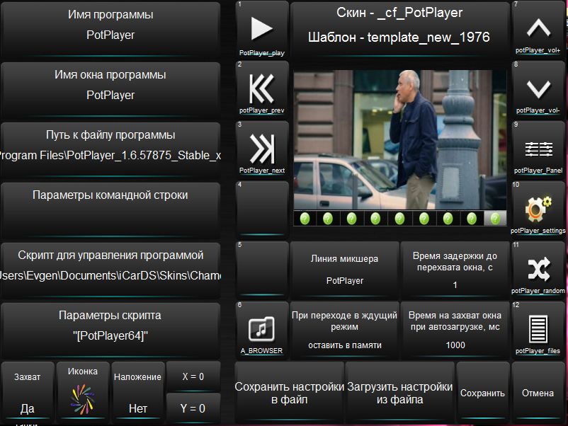 3.Обновить скин Chameleon, нажав (Update) 4.Последняя версия PotPlayer от duzzy и мой скин, все будет в архиве. В PotPlayer, настроил 4горячии клавиши. Это смешанный порядок (F8) настройки (F9), панел управления (F7) и диспечер файлов (F12) 5. Встраивание в iCarDS Идем в меню "Настройки скина → Установка программ", кликаем на пустую ячейку. Настройки: Шаблон – template_new_1976 Имя программы – PotPlayer Имя окна программы – PotPlayer Путь к файлу программы –Свой путь к программе Скрипт для управления программой-C:\Users\Evgen\Documents\iCarDS\Skins\Chameleon\SC RIPTS\SkinMediaTitle.exe (Указываем свой путь к скрипту) Параметры скрипта-"[PotPlayer64]" это для 64 битной системы, для 32-"[PotPlayer]" Захват – Да Иконка – выбираем свою Время задержки до перехвата окна – 1 сек Дополнительно настраиваем кнопки программы... Прописываем команды для iCarDS, для каждой кнопочки. Иконки выбираем на свой вкус. Дополнительно скину в архиве свой (ini) файл настроек имя файла-PotPlayer-800x600-template_new_1976-iCarUser. Команды для для Икара. potPlayer_prev PotPlayer_next PotPlayer_play potPlayer_Panel potPlayer_files potPlayer_vol- potPlayer_vol+ potPlayer_settings potPlayer_random 6.Запускаем PotPlayer. Удерживаем кнопку и назначаем кнопку программы. Если кнопка не работает, прописываем горячию клавищу программы. Например:{F9}. У меня еще добавлены динамические кнопки :это выход,полный экран, и кому что надо. https://cloud.mail.ru/public/5hmh/sCMCBZC9N В архиве будет плеер и и скины,а так же и инструкция для встраивания в iCarDS Как то так. Последний раз редактировалось Евген_21; 26.03.2016 в 19:57. |