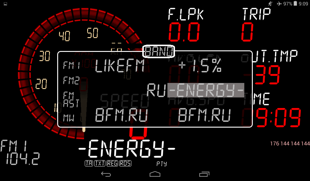 Вот окончательный вид интерфейса. Не реальный только радиотекст, всё остальное снимается с магнитолы которая лежит на столе.