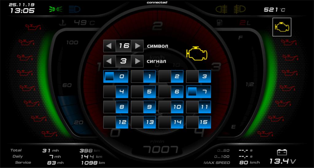 Venator Lite4 - свободная для распостранения, адаптированная для использования на устройствах Android с сенсорным вводом (смартфоны, планшеты), совместимая с Android 9. Приложение + скетч + лаунчер - https://drive.google.com/drive/folde...vw?usp=sharing * Один скин, язык интерфейса - русский. * Отображение скорости автомобиля с возможностью корректировки. - Источник данных - импульсный датчик скорости либо встроенный GPS. - Настраиваемые пороги скорости с цветовой индикацией. - Несколько вариантов звукового (включая голосовое) оповещения небезопасной скорости. * Отображение оборотов мотора с возможностью корректировки. - Настраиваемый максимум шкалы тахометра 4000...16000 об./мин. - Настраиваемые пороги оборотов с цветовой индикацией. - Несколько вариантов звукового (включая голосовое) оповещения критических оборотов. * Отображение напряжения АКБ с возможностью корректировки - Цветовая индикация при падении напряжения ниже 10.5 В - Несколько вариантов звукового оповещения при падении напряжения ниже 10.5 В * Отображение включения заднего хода со звуковым оповещением * Отображение уровня топлива - Калибровка датчика уровня топлива. - Настраиваемый порог и цветовая индикация низкого уровня топлива. - Несколько вариантов звукового (включая голосовое) оповещения низкого уровня топлива. * Отображение температуры охлаждающей жидкости - Калибровка датчика температуры охлаждающей жидкости. - Настраиваемый порог и цветовая индикация высокой температуры охлаждающей жидкости. - Несколько вариантов звукового (включая голосовое) оповещения высокой температуры охлаждающей жидкости. * Отображение температуры (отключаемое) с одного датчика типа DS18B20 (наружная температура или температура салона) * Отображение времени и даты (отключаемое) * Индикация включеной передачи КПП/АКПП * 16 настраиваемых контрольных ламп - выбор одного или нескольких входов включения контрольной лампы. - выбор пиктограммы контрольной лампы (43 варианта). - звукового оповещения при включении контрольной лампы (4 варианта). * Настраиваемый счетчик общего пробега * Сбрасываемый счетчик суточного пробега. Сброс счетчика суточного пробега тапом по зоне одометра или сигналом с блока сбора данных. * Настраиваемый обратный счетчик сервисного интервала пробега * Настраиваемый счетчик общего ресурса моточасов ( 1 мото час = 1 час * (Обороты двигателя / 1000) ) * Сбрасываемый счетчик суточного ресурса моточасов. Сброс счетчика суточного ресурса тапом по зоне счетчика. * Настраиваемый обратный счетчик сервисного ресурса моточасов * Настраиваемая яркость подсветки экрана при включении габаритных огней. * Режим HUD - проэкция экрана на отражающую поверхность. * Замер разгона 0…50 и 0…100 км/ч. Замер максимальной скорости. - Замер разгона и максимальной скорости начинается после начала движения. - Результаты замеров сохраняются до начала нового замера. * Настройка IP адреса, номера порта, пробега и сервисных интервалов осуществляются с виртуальной клавиатуры. В поле ввода вносится соответствующее значение, по нажатию кнопки рядом с полем — значение запоминается. Кроме альтернативного IP в панели настроек, для подключения также используются IP адреса по умолчанию. 192.168.4.1 для ESP 82666 (Wifi подключение) 192.168.16.254 для HLK-RM04 (Wifi подключение) 127.0.0.1 для localhost (USB подключение при использовании программного шлюза Ser2Net, serportAuto) При подключении в первую очеред