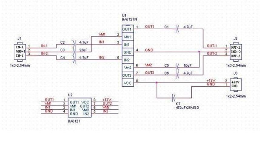 Приветствую всех! Собираю плату с защитой звука от помех на микросхеме ВА3121 по нижеуказанной схеме. Одна микросхема работает всего на 2 канала. Меня интересует подключение сразу 4 каналов. Для этого собираю сразу 2 схемы с одним питанием. Планирую подключать к усилителю у которого по 4 входа на каждый канал, и один общий минус.