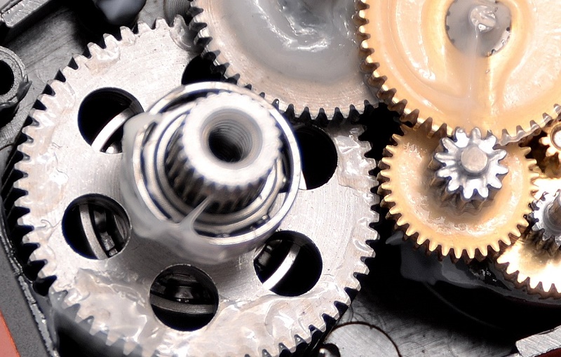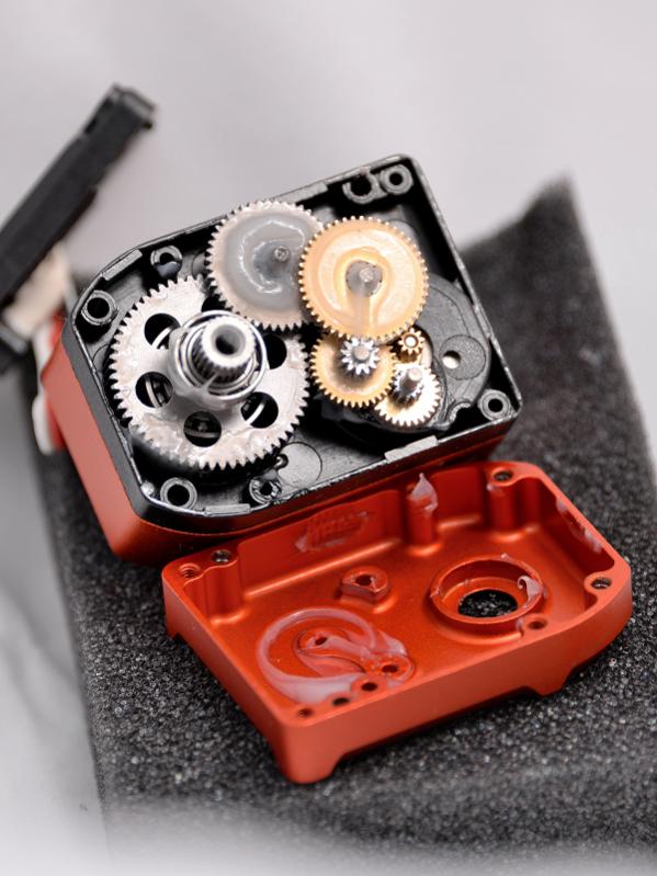 Из-за того, что оси валов пересекаются под углом в 90 градусов я в своих механизмах использую коническую передачу. Коническая шестерня, та что на серве, располагается консольно. При этом, вследствие повышенной деформации консольного вала (один из побочных эффектов конической передачи), увеличивается неравномерность распределения нагрузки по ширине зубчатого венца и как следствие - выход одного подшипника сервомотора из строя - того, что ближе и меньше по размеру на фото. Появляется значительный люфт у "подиума" в открытом состоянии. Подшипник, прямо скажу - слабоват для заявленного усилия в 53кг/см. Подобрать что-то более надежное для замены вряд ли получится. Думаю сделать небольшой промежуточный редуктор с более мощными подшипниками и перенести осевую нагрузку с подшипника сервы. Позже поделюсь результатом. |